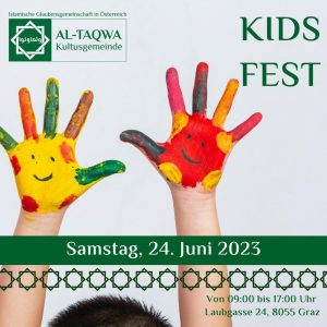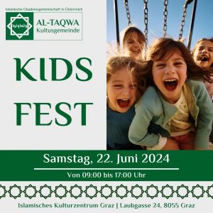 Anlässlich des Endes des Moschee-Unterrichtsjahres 2023/24 lädt die Al-Taqwa Kultusgemeinde zu einem gemeinsamen Kids-Fest ein.